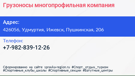 Грузоносы, многопрофильная компания по адресу 426056, Удмуртия, Ижевск, Пушкинская, 206 в дальнейшем Организация, размещена в следующих категориях: