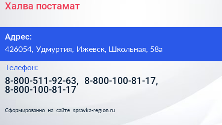 Халва, постамат по адресу 426054, Удмуртия, Ижевск, Школьная, 58а в дальнейшем Организация, размещена в следующих категориях: