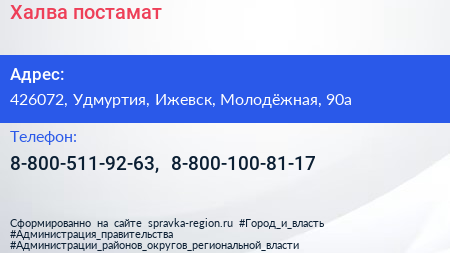 Халва, постамат по адресу 426072, Удмуртия, Ижевск, Молодёжная, 90а в дальнейшем Организация, размещена в следующих категориях: