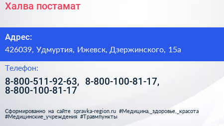 Халва, постамат по адресу 426039, Удмуртия, Ижевск, Дзержинского, 15а в дальнейшем Организация, размещена в следующих категориях: