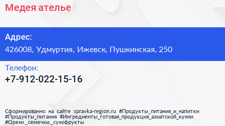 Медея, ателье по адресу 426008, Удмуртия, Ижевск, Пушкинская, 250 в дальнейшем Организация, размещена в следующих категориях: