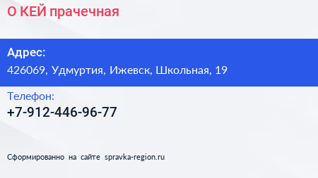 О`КЕЙ, прачечная по адресу 426069, Удмуртия, Ижевск, Школьная, 19 в дальнейшем Организация, размещена в следующих категориях: