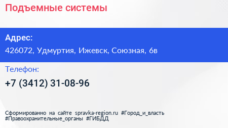 Подъемные системы по адресу 426072, Удмуртия, Ижевск, Союзная, 6в в дальнейшем Организация, размещена в следующих категориях: