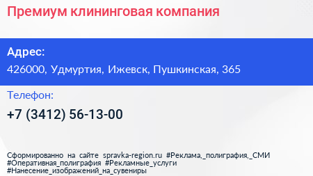 Премиум, клининговая компания по адресу 426000, Удмуртия, Ижевск, Пушкинская, 365 в дальнейшем Организация, размещена в следующих категориях: