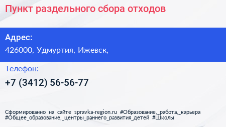 Пункт раздельного сбора отходов по адресу 426000, Удмуртия, Ижевск, в дальнейшем Организация, размещена в следующих категориях: