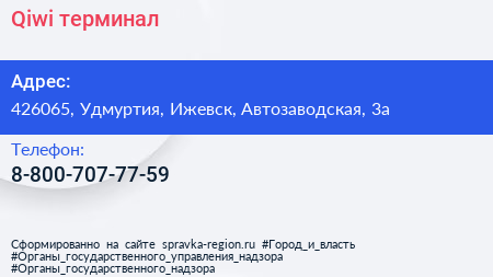 Qiwi, терминал по адресу 426065, Удмуртия, Ижевск, Автозаводская, 3а в дальнейшем Организация, размещена в следующих категориях:
