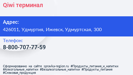 Qiwi, терминал по адресу 426011, Удмуртия, Ижевск, Удмуртская, 300 в дальнейшем Организация, размещена в следующих категориях: