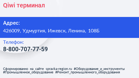 Qiwi, терминал по адресу 426009, Удмуртия, Ижевск, Ленина, 108Б в дальнейшем Организация, размещена в следующих категориях:
