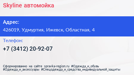 Skyline, автомойка по адресу 426019, Удмуртия, Ижевск, Областная, 4 в дальнейшем Организация, размещена в следующих категориях: