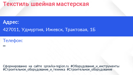 Текстиль, швейная мастерская по адресу 427011, Удмуртия, Ижевск, Трактовая, 1Б в дальнейшем Организация, размещена в следующих категориях: