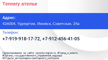 Tennery, ателье по адресу 426004, Удмуртия, Ижевск, Советская, 24а в дальнейшем Организация, размещена в следующих категориях: