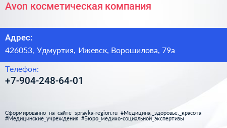 Avon, косметическая компания по адресу 426053, Удмуртия, Ижевск, Ворошилова, 79а в дальнейшем Организация, размещена в следующих категориях: