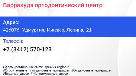 Барракуда, ортодонтический центр по адресу 426076, Удмуртия, Ижевск, Ленина, 21 в дальнейшем Организация, размещена в следующих категориях: