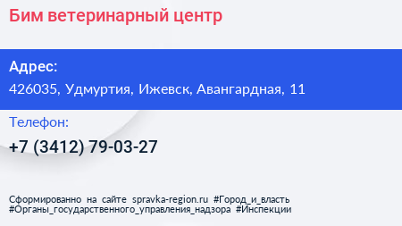 Бим, ветеринарный центр по адресу 426035, Удмуртия, Ижевск, Авангардная, 11 в дальнейшем Организация, размещена в следующих категориях: