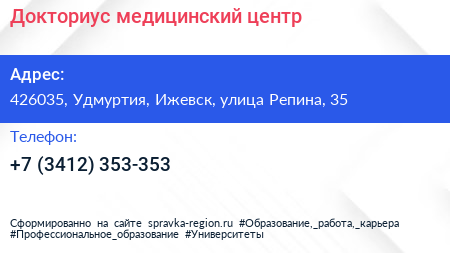 Докториус, медицинский центр по адресу 426035, Удмуртия, Ижевск, улица Репина, 35 в дальнейшем Организация, размещена в следующих категориях: