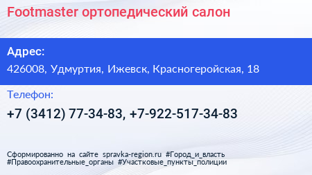 Footmaster, ортопедический салон по адресу 426008, Удмуртия, Ижевск, Красногеройская, 18 в дальнейшем Организация, размещена в следующих категориях: