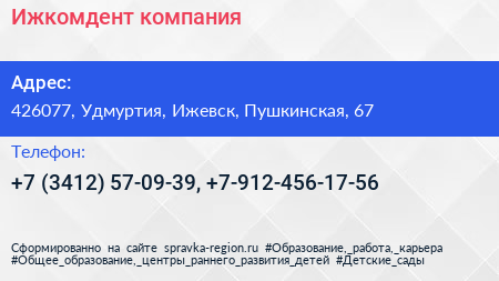 Ижкомдент, компания по адресу 426077, Удмуртия, Ижевск, Пушкинская, 67 в дальнейшем Организация, размещена в следующих категориях: