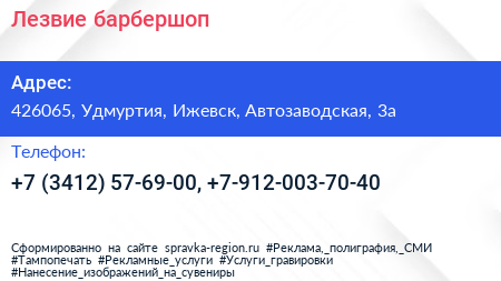 Лезвие, барбершоп по адресу 426065, Удмуртия, Ижевск, Автозаводская, 3а в дальнейшем Организация, размещена в следующих категориях: