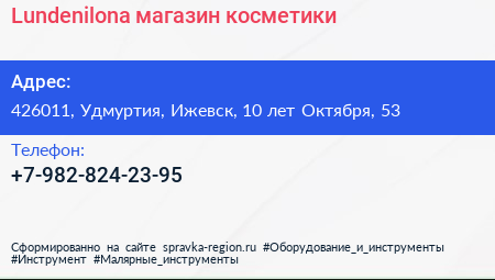 Lundenilona, магазин косметики по адресу 426011, Удмуртия, Ижевск, 10 лет Октября, 53 в дальнейшем Организация, размещена в следующих категориях: