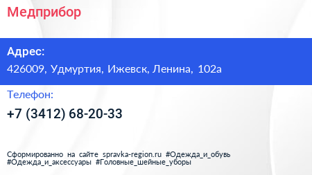 Медприбор по адресу 426009, Удмуртия, Ижевск, Ленина, 102а в дальнейшем Организация, размещена в следующих категориях:
