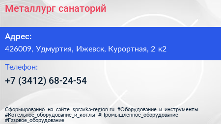 Металлург, санаторий по адресу 426009, Удмуртия, Ижевск, Курортная, 2 к2 в дальнейшем Организация, размещена в следующих категориях: