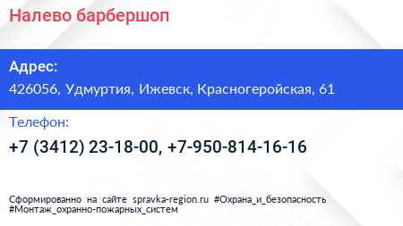 Налево, барбершоп по адресу 426056, Удмуртия, Ижевск, Красногеройская, 61 в дальнейшем Организация, размещена в следующих категориях: