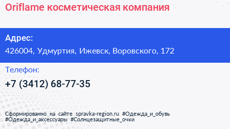 Оriflame, косметическая компания по адресу 426004, Удмуртия, Ижевск, Воровского, 172 в дальнейшем Организация, размещена в следующих категориях: