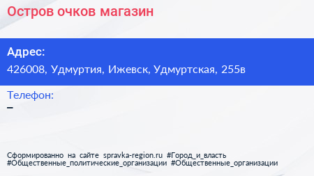 Остров очков, магазин по адресу 426008, Удмуртия, Ижевск, Удмуртская, 255в в дальнейшем Организация, размещена в следующих категориях: