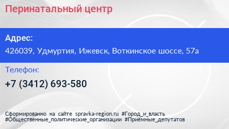 Перинатальный центр по адресу 426039, Удмуртия, Ижевск, Воткинское шоссе, 57а в дальнейшем Организация, размещена в следующих категориях: