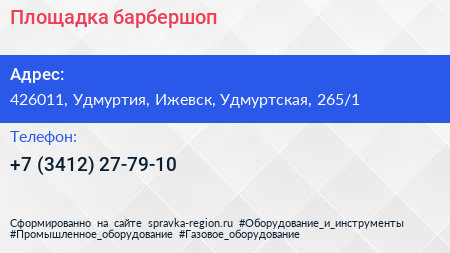 Площадка, барбершоп по адресу 426011, Удмуртия, Ижевск, Удмуртская, 265/1 в дальнейшем Организация, размещена в следующих категориях: