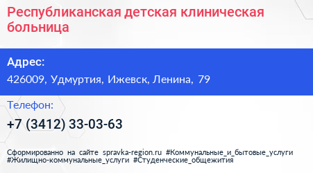 Республиканская детская клиническая больница по адресу 426009, Удмуртия, Ижевск, Ленина, 79 в дальнейшем Организация, размещена в следующих категориях: