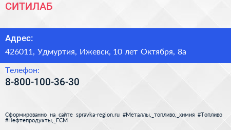 СИТИЛАБ по адресу 426011, Удмуртия, Ижевск, 10 лет Октября, 8а в дальнейшем Организация, размещена в следующих категориях: