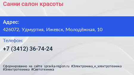 Санни, салон красоты по адресу 426072, Удмуртия, Ижевск, Молодёжная, 10 в дальнейшем Организация, размещена в следующих категориях: