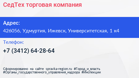 СедТех, торговая компания по адресу 426056, Удмуртия, Ижевск, Университетская, 1 к4 в дальнейшем Организация, размещена в следующих категориях: