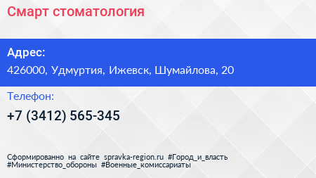 Смарт, стоматология по адресу 426000, Удмуртия, Ижевск, Шумайлова, 20 в дальнейшем Организация, размещена в следующих категориях: