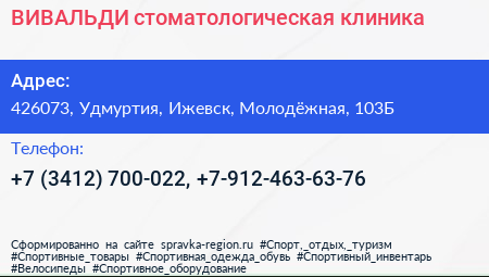 ВИВАЛЬДИ, стоматологическая клиника по адресу 426073, Удмуртия, Ижевск, Молодёжная, 103Б в дальнейшем Организация, размещена в следующих категориях: