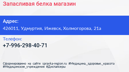 Запасливая белка, магазин по адресу 426011, Удмуртия, Ижевск, Холмогорова, 21а в дальнейшем Организация, размещена в следующих категориях: