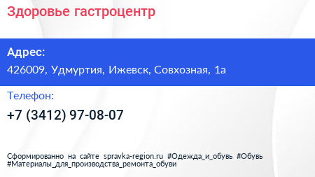 Здоровье, гастроцентр по адресу 426009, Удмуртия, Ижевск, Совхозная, 1а в дальнейшем Организация, размещена в следующих категориях: