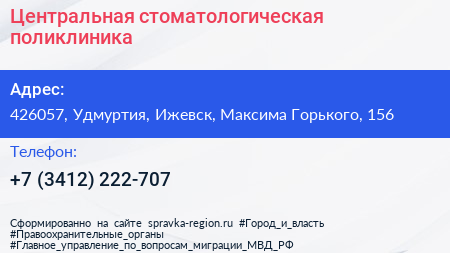 Центральная, стоматологическая поликлиника по адресу 426057, Удмуртия, Ижевск, Максима Горького, 156 в дальнейшем Организация, размещена в следующих категориях: