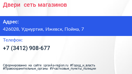 Двери+, сеть магазинов по адресу 426028, Удмуртия, Ижевск, Пойма, 7 в дальнейшем Организация, размещена в следующих категориях: