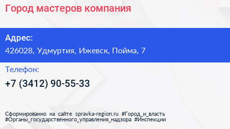 Город мастеров, компания по адресу 426028, Удмуртия, Ижевск, Пойма, 7 в дальнейшем Организация, размещена в следующих категориях: