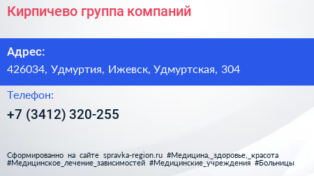 Кирпичево, группа компаний по адресу 426034, Удмуртия, Ижевск, Удмуртская, 304 в дальнейшем Организация, размещена в следующих категориях: