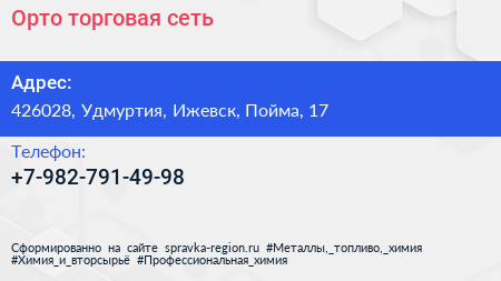 Орто, торговая сеть по адресу 426028, Удмуртия, Ижевск, Пойма, 17 в дальнейшем Организация, размещена в следующих категориях: