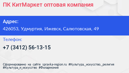 ПК КитМаркет, оптовая компания по адресу 426053, Удмуртия, Ижевск, Салютовская, 49 в дальнейшем Организация, размещена в следующих категориях: