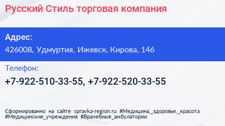 Русский Стиль, торговая компания по адресу 426008, Удмуртия, Ижевск, Кирова, 146 в дальнейшем Организация, размещена в следующих категориях: