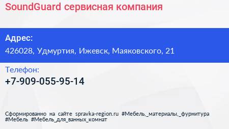 SoundGuard, сервисная компания по адресу 426028, Удмуртия, Ижевск, Маяковского, 21 в дальнейшем Организация, размещена в следующих категориях: