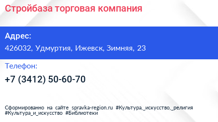 Стройбаза, торговая компания по адресу 426032, Удмуртия, Ижевск, Зимняя, 23 в дальнейшем Организация, размещена в следующих категориях: