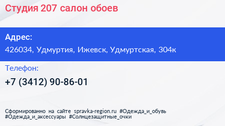 Студия 207, салон обоев по адресу 426034, Удмуртия, Ижевск, Удмуртская, 304к в дальнейшем Организация, размещена в следующих категориях:
