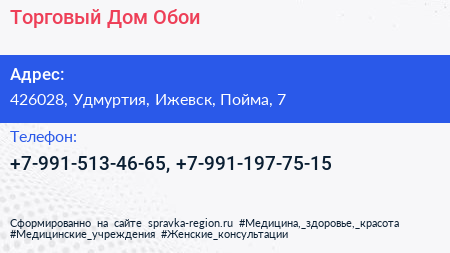 Торговый Дом Обои по адресу 426028, Удмуртия, Ижевск, Пойма, 7 в дальнейшем Организация, размещена в следующих категориях: