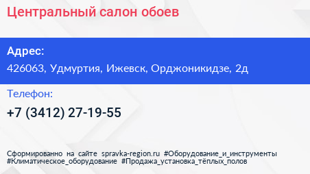 Центральный, салон обоев по адресу 426063, Удмуртия, Ижевск, Орджоникидзе, 2д в дальнейшем Организация, размещена в следующих категориях: